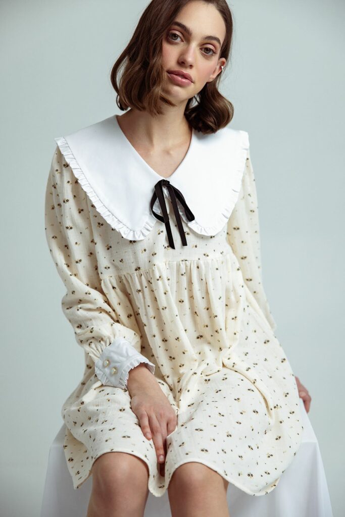 • bufiaste rękawy + falbany – dodają objętości i dziewczęcego uroku