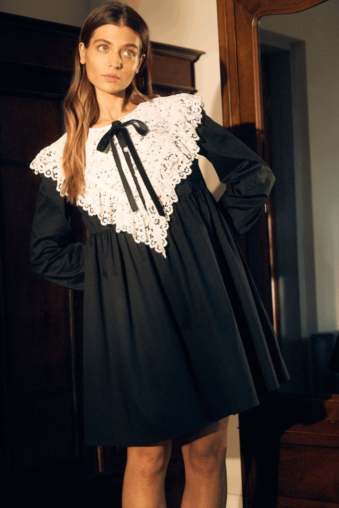 Koronkowa koszula Jasmine to idealna propozycja dla fanek mody retro i vintage. Posiada luźny krój oraz ozdobne marszczenia na dole rękawów. Koszula ma charakterystyczny dla marki kształt kołnierza, zwieńczony aksamitnym wiązaniem, który sprawia, że prezentuje się niezwykle oryginalnie i dziewczęco.